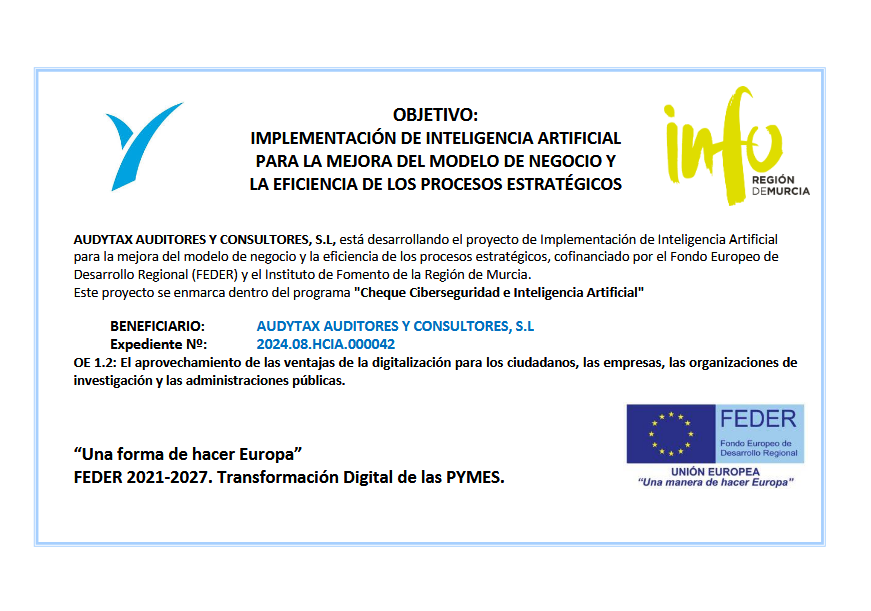 La empresa AUDYTAX AUDITORES Y CONSULTORES, S.L. está llevando a cabo un proyecto de Implementación de Inteligencia Artificial para la Gestión de Inventarios y Transformación Digital, con el número de expediente: 2024.08.HCIA.000042.